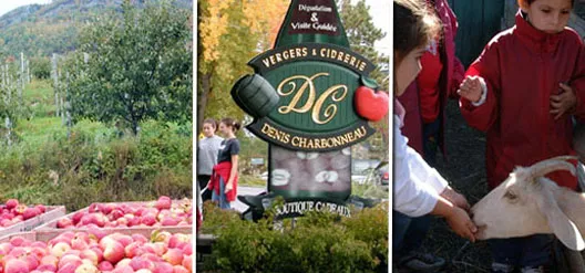 Sortie familiale aux Vergers Denis Charbonneau Accueil / Contenus / Amérique du Nord / Le Canada, une question de géographie / Le Québec / Montérégie / Sortie familiale aux Vergers Denis Charbonneau Si vous allez cueillir des pommes aux Vergers Denis Charbonneau, au pied du mont Saint-Grégoire, ne soyez pas surpris si le stationnement dans le rang de la Montagne déborde loin dans le champ. Mais qu’est-ce qui amène autant de gens? Après tout, ce ne sont pas les vergers qui manquent dans ce secteur entre Montréal et Granby. La réponse est simple: il y a beaucoup plus que la cueillette de pommes. Navette : gratuiteServices : maison hantée, boutique, restaurant, petite ferme, aire de jeux Saison : fin juillet à fin octobre Activités sur place : autocueillette, pique-nique, maison hantée, dégustations, observation des animaux, aire de jeux Navette À l’entrée des vergers, un petit resto charmant et rustique abrite sous le même toit la boutique où l’on vend des produits maison, comme des tartes, des confitures et des gelées. Notre suggestion: les crêpes aux asperges, avec jambon et sauce béchamel. Avec un mousseux du Fermier, fait à la cidrerie des Charbonneau, c’est délicieux. Aux portes du resto, une navette se rend aux vergers toutes les 15 min. Il s’agit de voitures tiré s par un tracteur ou encore d’une charrette avec chevaux. Le trajet passe en plein cœur des vergers. Les pommiers s’étendent à perte de vue, dominés par le mont Saint-Grégoire. La navette s’arrête au Relais du verger, un grand bâtiment avec une aire de jeux pour les enfants à côté. De là, vous entrez dans le verger avec vos sacs, pour les remplir de pommes. Attraits pour enfants À deux pas se dresse la Maison hantée. Des enfants entrent, d’autres hésitent. Ceux qui sortent se font peur et en rient. Une petite ferme abrite chèvres, lapins et autres animaux. Dans un étang s’ébattent oies et canards. Entre les bâtiments, glissoires et balançoires font la joie des enfants. Pour une sortie en famille, c’est génial. Comment s’y rendre Vergers Denis Charbonneau, 575 rang de la Montagne, Mont-St-Grégoire,450-347-9184, www.vergersdc.qc.caEn voiture : autoroute des Cantons-de-l’Est (10), sortie 37, et route 227 Sud; de là, suivre les indications inscrites sur les panneaux routiers bleus.