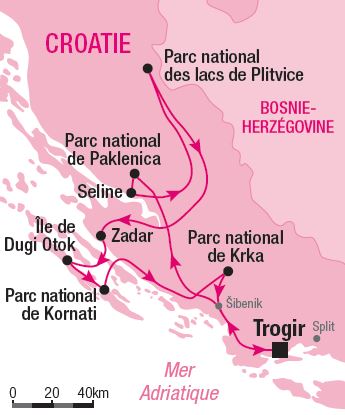 Randonnées de rêve dans les splendides parcs nationaux de Croatie Accueil / Contenus / Europe / Randonnées de rêve dans les splendides parcs nationaux de Croatie Parc national des lacs de Plitvice | © iStockphoto.com/xbrchx Extrait du guide : Randonnées de rêve - 50 itinéraires autour du monde Papier (livre entier) 34,95 $ Randonnées de rêve – 50 itinéraires autour du monde vous invite à partir à l’aventure dès la première page. Voir la suite La Croatie constitue une destination unique en Europe : dans ce carrefour culturel, vous découvrirez un savoureux mélange d’Europe centrale et de Méditerranée. La Croatie, c’est aussi une côte merveilleuse parsemée d’une myriade d’îles et d’îlots, des cités médiévales uniques regorgeant de trésors architecturaux et une nature généreuse encore sauvage. Les parcs nationaux renferment une faune variée (chats sauvages, loups, ours, chamois, lynx), des canyons et des cascades féeriques. Les amoureux de nature et de culture seront comblés par ce petit pays chargé d’histoire! Jour 1 Trogir La vieille ville de Trogir est un monument unique, véritable musée à ciel ouvert. Cathédrale Saint-Laurent et sa porte sculptée, palais des Ducs, tour Saint-Marc, murs et portes du XIIIe s. : perdez-vous dans les ruelles à la découverte des richesses de cette cité médiévale au long et tumultueux passé. Jours 2 et 3 Trogir – Parc national de Paklenica – Seline Durant deux jours, dans des paysages de montagnes, vos pas vous mèneront vers le sommet de Bojin Kuk, qui dévoile la mer Adriatique à l’horizon. Ne manquez pas la fabuleuse randonnée le long du canyon de Velika Paklenica, avec ses hautes gorges creusées dans le karst, jusqu’au petit village abandonné de Jurline. Jours 4 et 5 Seline – Parc national des lacs de Plitvice – Zadar Parmi les parcs de Croatie, celui des lacs de Plitvice est sans doute le plus inoubliable tant la magie de ses somptueuses cascades vous gagne à chaque pas. Ici l’eau a creusé dans la roche calcaire des lacs d’un bleu turquoise magnifique. Le chemin, entre lacs et cascades, serpente dans ce décor luxuriant d’une rare beauté. À Zadar, vous découvrirez une cité pittoresque et authentique au riche patrimoine historique. Jour 6 Zadar Île de Dugi Otok Parc national de Kornati Du village de Sali, sur l’île de Dugi Otok, que vous aurez rejointe en traversier, vous randonnerez dans le parc national de Telašica sur un sentier côtier traversant champs d’oliviers et forêts de pins. Vous naviguerez ensuite à la découverte des mille et une îles de l’archipel des Kornati. Îles désertes, plages et criques isolées aux eaux turquoise : la journée sera ponctuée de baignades dans la douceur méditerranéenne. Jour 7 Parc national de Krka – Trogir Retour sur le continent et direction le parc national de Krka, où le fleuve du même nom a creusé dans le sol karstique une enfilade de cascades spectaculaires. Merveilles naturelles, les chutes de Skradin, avec leurs 17 paliers, seront le clou du spectacle, avant le retour à Trogir. Pour qui ? Pourquoi ? Un voyage accessible à tous, entre randonnée dans les parcs et découverte des îles dalmates, au rythme des flots, à l’écart des sites touristiques. Un véritable enchantement dans un pays de toute beauté, entre mer et montagnes. Quand y aller? La Croatie se visite d’avril à octobre, mais les saisons idéales restent le printemps et l’automne, alors que vous profiterez de la douceur de la Méditerranée pendant une période de faible affluence. Extraits tirés du livre Randonnées de rêve – 50 itinéraires autour du monde, par un collectif d'auteurs Ulysse et les experts de l’Agence Terres d’Aventure, spécialisée dans la conception de voyages de randonnée et d’aventure.
