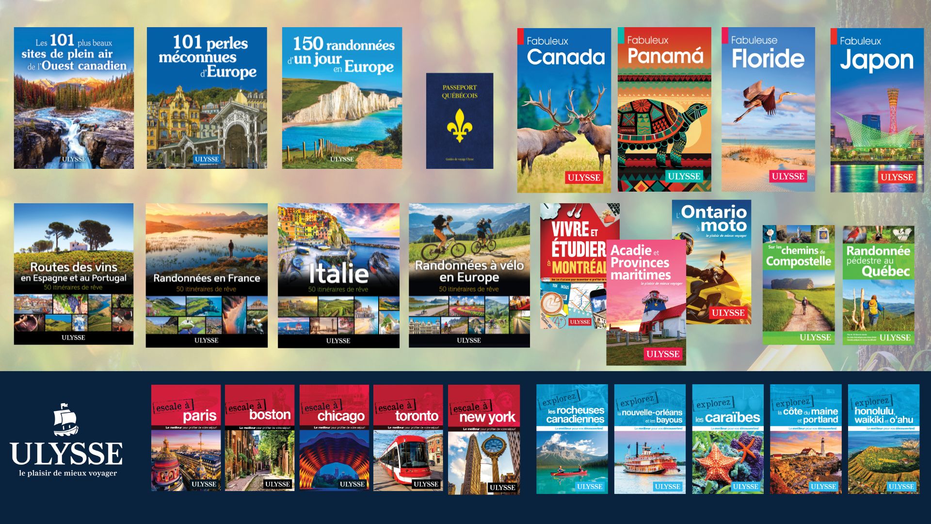 Communiqués 2024 Accueil / Contenus / Communiqués de presse Ulysse / Communiqués 2024 Collection Fabuleux Fabuleux Panama Fabuleux Canada Fabuleuse Floride Fabuleux Japon Collection Itinéraires de rêve Randonnées à vélo en Europe - 50 itinéraires de rêve Randonnées en France - 50 itinéraires de rêve Routes des vins Espagne et Portugal - 50 itinéraires de rêve Italie - 50 itinéraires de rêve Collection Le meilleur selon Ulysse 101 perles méconnues d'Europe Les 101 plus beaux sites de plein air de l'Ouest canadien 150 randonnées d'un jour en Europe Collection Escale et Explorez Explorez la côte du Maine et Portland Explorez Honolulu, Waikiki et O'ahu Explorez les Rocheuses canadiennes Explorez La Nouvelle-Orléans et les bayous Explorez les Caraïbes Escale à Paris Escale à New York Escale à Boston Escale à Chicago Escale à Toronto Autres titres Passeport québécois L'Ontario à moto Randonnée pédestre au Québec Sur les chemins de Compostelle Acadie et Provinces maritimes Vivre et étudier à Montréal
