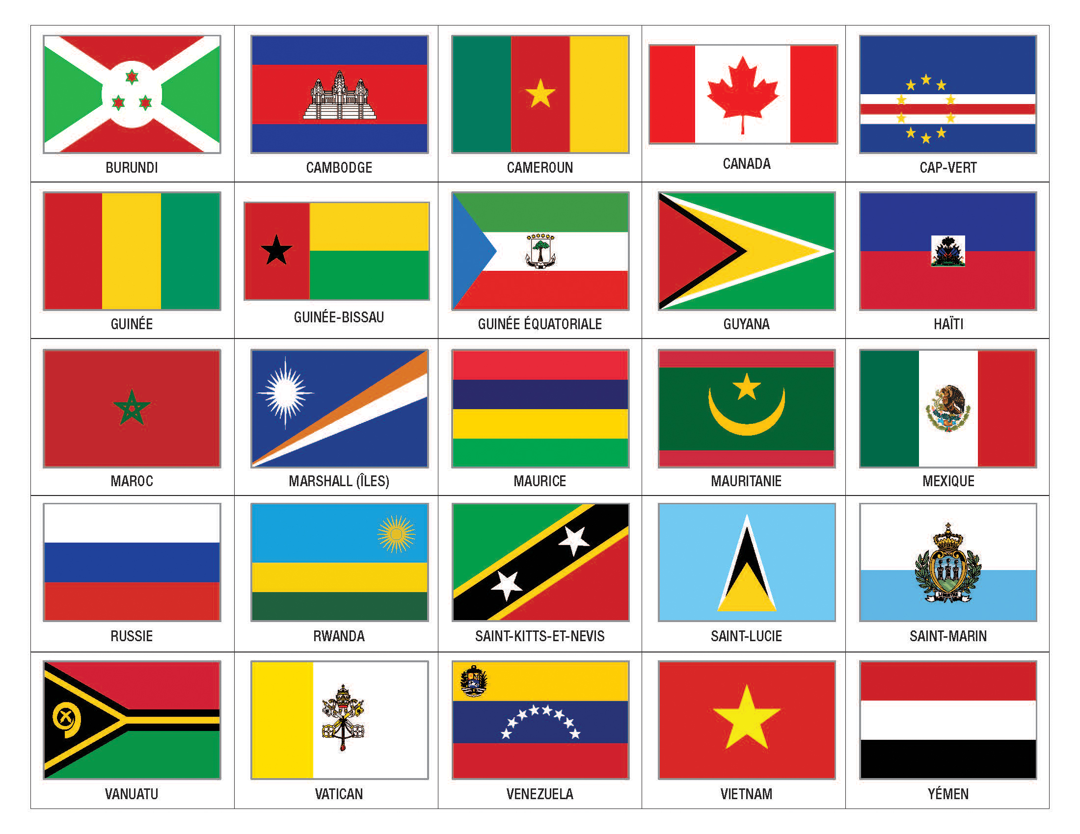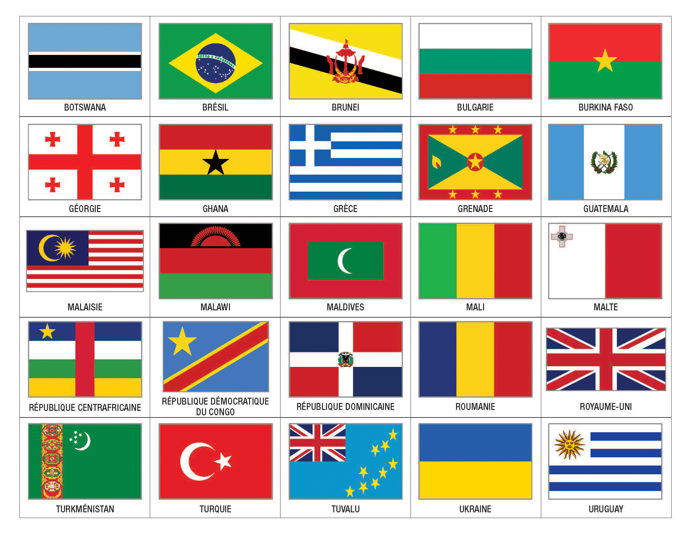 Jeu drapeaux du monde Accueil / Contenus / Art de vivre / Jeu drapeaux du monde Version simplifiée de la carte du monde Ulysse Cherche un drapeau et trouve son pays ! Tu auras besoin : D’une carte du monde politique De la liste des drapeaux que tu trouveras ci-dessous Voici les étapes de ce jeu qui te permettra d’utiliser les coordonnées géographiques (à la jonction d’une lettre et d’un chiffre) pour trouver un pays sur une carte du monde. Imprime et découpe les drapeaux ci-dessous (tu les trouveras aussi dans le fichier ici ) Place-les dans une boîte Pioche un drapeau Cherche-le sur la liste et repère ses coordonnées géographiques Trouve le pays sur la carte du monde Positionne ton drapeau sur son pays avec une gommette C